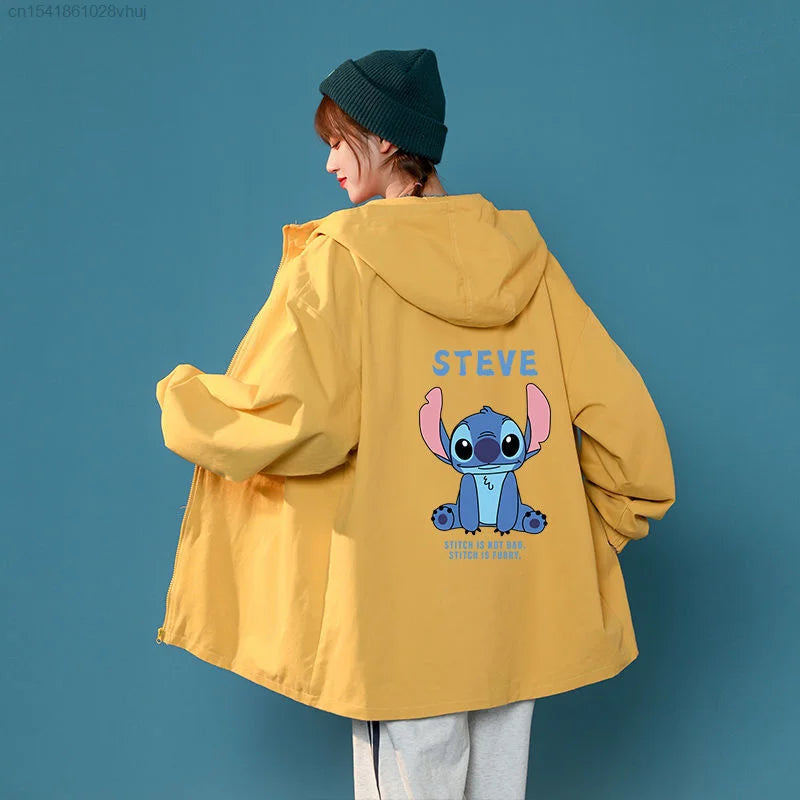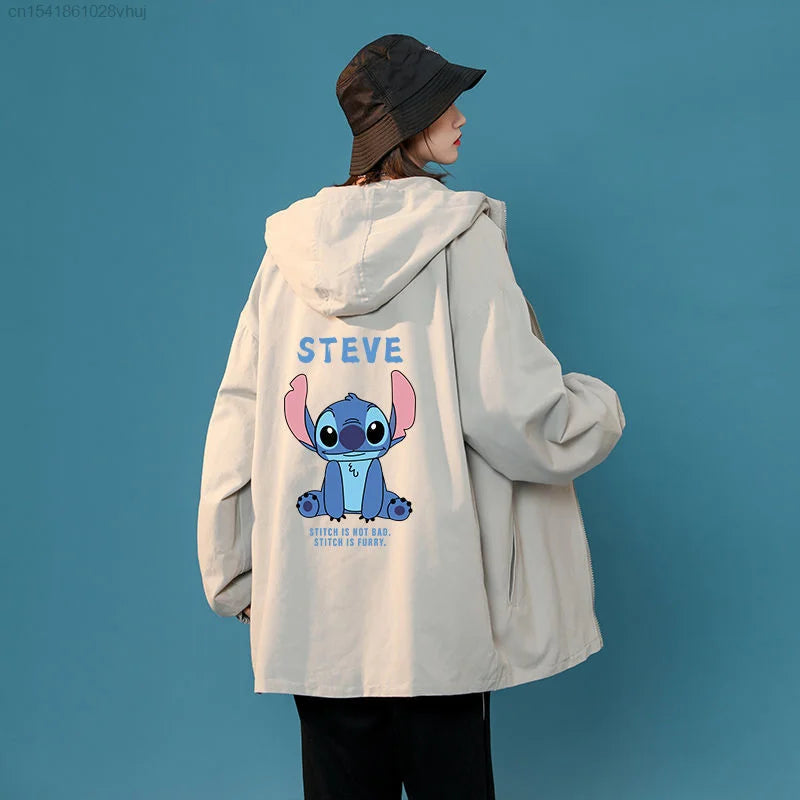 Elevate your style with our Disney Cartoon Stitch Bomber Jacket. This trendy oversized outerwear is perfect for girls who love a touch of Y2K fashion with a dash of hip-hop flair. Featuring a stylish hooded design, this black cardigan coat combines comfort, warmth, and bold style, making it an ideal choice for students and young trendsetters.