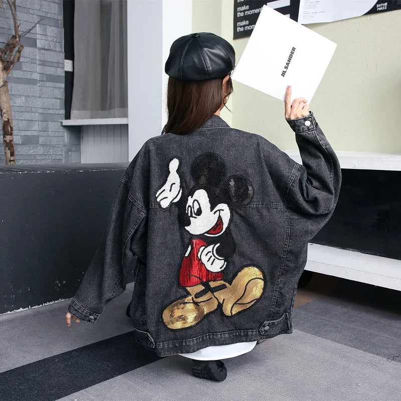 Step into autumn with style and comfort with our Autumn Long Sleeve Embroidered Sequin Cartoon Oversized Denim Jacket. This fashionable mid-length jeans coat is the perfect blend of casual cool and playful details, making it a must-have for women who want to stand out.
